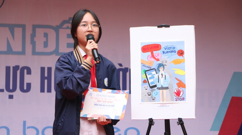 Tại đây, chuyên gia Tâm lý giáo dục Nguyễn Lệ Thủy đến từ Báo Thiếu niên tiền phong và Nhi đồng đã chia sẻ một số câu chuyện thực tế về bạo lực học đường (BLHĐ). Các em học sinh được hiểu về khái niệm cũng như các dạng thức của BLHĐ. Trong môi trường học đường, không hiếm gặp những tình huống tiềm ẩn nguy cơ BLHĐ như: Bắt nạt, trêu ghẹo bạn một cách quá đà; tung tin đồn hoặc buông lời thách thức bạn về một việc gì đó... đều dễ khiến đối phương bị tổn thương, thậm chí dẫn đến hậu quả tiêu cực.