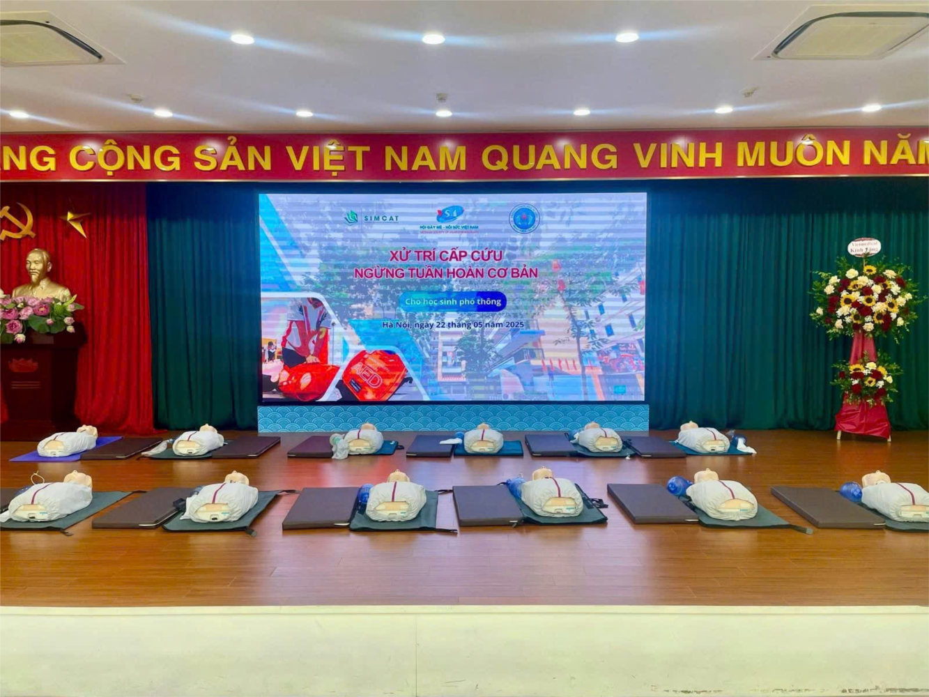 Nhằm trang bị cho học sinh và giáo viên những kiến thức và kỹ năng thiết yếu trong xử lý các tình huống khẩn cấp, sáng ngày 22/5/2025, trường THCS Ngô Sĩ Liên (quận Hoàn Kiếm, Hà Nội) đã phối hợp với Trung tâm Đào tạo mô phỏng SIMCAT – Hội Gây mê Hồi sức Việt Nam (GMHSVN) tổ chức Khóa tập huấn "Cấp cứu ngừng tuần hoàn cơ bản cho học sinh phổ thông", dành cho học sinh khối 8 và giáo viên của nhà trường.