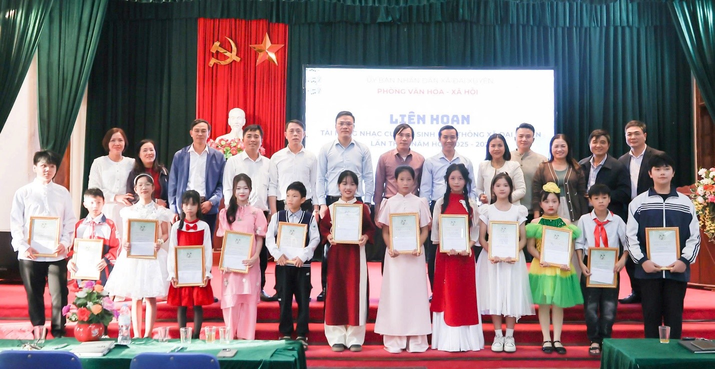 Thực hiện Kế hoạch số 4342/SGD&ĐT ngày 21/10/2025 của Sở Giáo dục và Đào tạo Hà Nội về việc tổ chức Liên hoan tài năng nhạc cụ học sinh phổ thông thành phố Hà Nội lần thứ I năm học 2025-2026 ngày 27/11/2025, Phòng Văn hóa - Xã hội xã Đại Xuyên đã tổ chức thành công Liên hoan tài năng nhạc cụ học sinh phổ thông xã Đại Xuyên lần thứ I năm học 2025-2026.