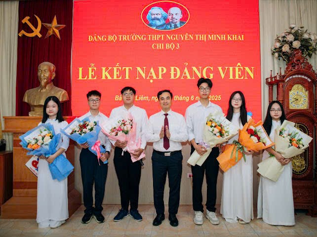 Hòa trong không khí toàn Đảng, toàn dân thi đua lập thành tích chào mừng 80 năm Cách mạng Tháng Tám thành công (19/8/1945 - 19/8/2025) và Quốc khánh nước CHXHCN Việt Nam, Đảng bộ Trường THPT Nguyễn Thị Minh Khai đã long trọng tổ chức Lễ kết nạp Đảng viên mới cho 6 đoàn viên ưu tú là học sinh.