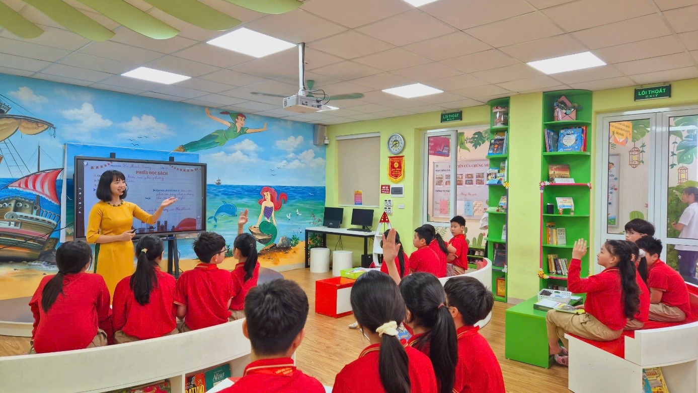 Tiết đọc thư viện do cô Phan Thu Hương - nhân viên thư viện Trường Tiểu học CLC Tràng An thực hiện