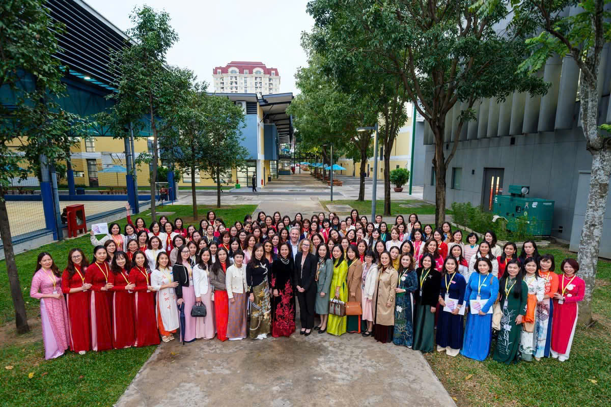 Phó Giám đốc Sở GDĐT Vương Hương Giang, lãnh đạo trường UNIS cùng cán bộ, chuyên viên phòn GDMN chụp ảnh kỷ niệm.