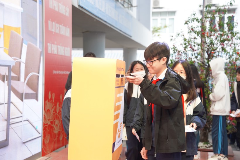 Học sinh trường THCS Phan Chu Trinh gửi thư ngay tại khuôn viên trường.