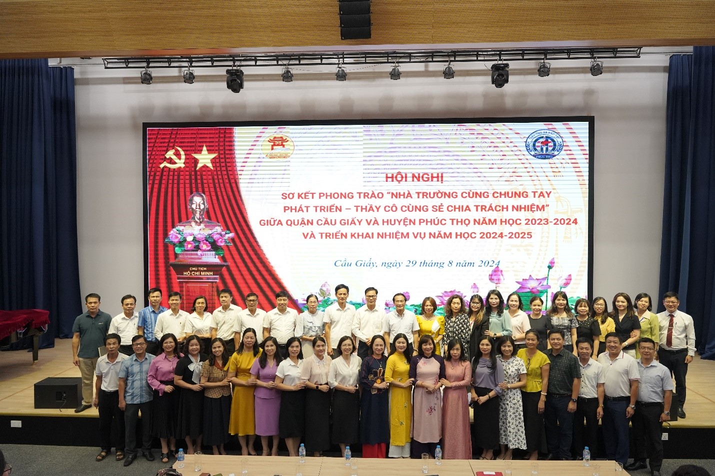 Theo báo cáo sơ kết, năm học 2023-2024, hai phòng GDĐT Cầu Giấy và Phúc Thọ đã tập trung nâng cao chất lượng công tác chuyên môn và lan tỏa sâu rộng phong trào “Nhà trường cùng chung tay phát triển - Thầy cô cùng sẻ chia trách nhiệm” đến các trường trên địa bàn quận Cầu Giấy và huyện Phúc Thọ.