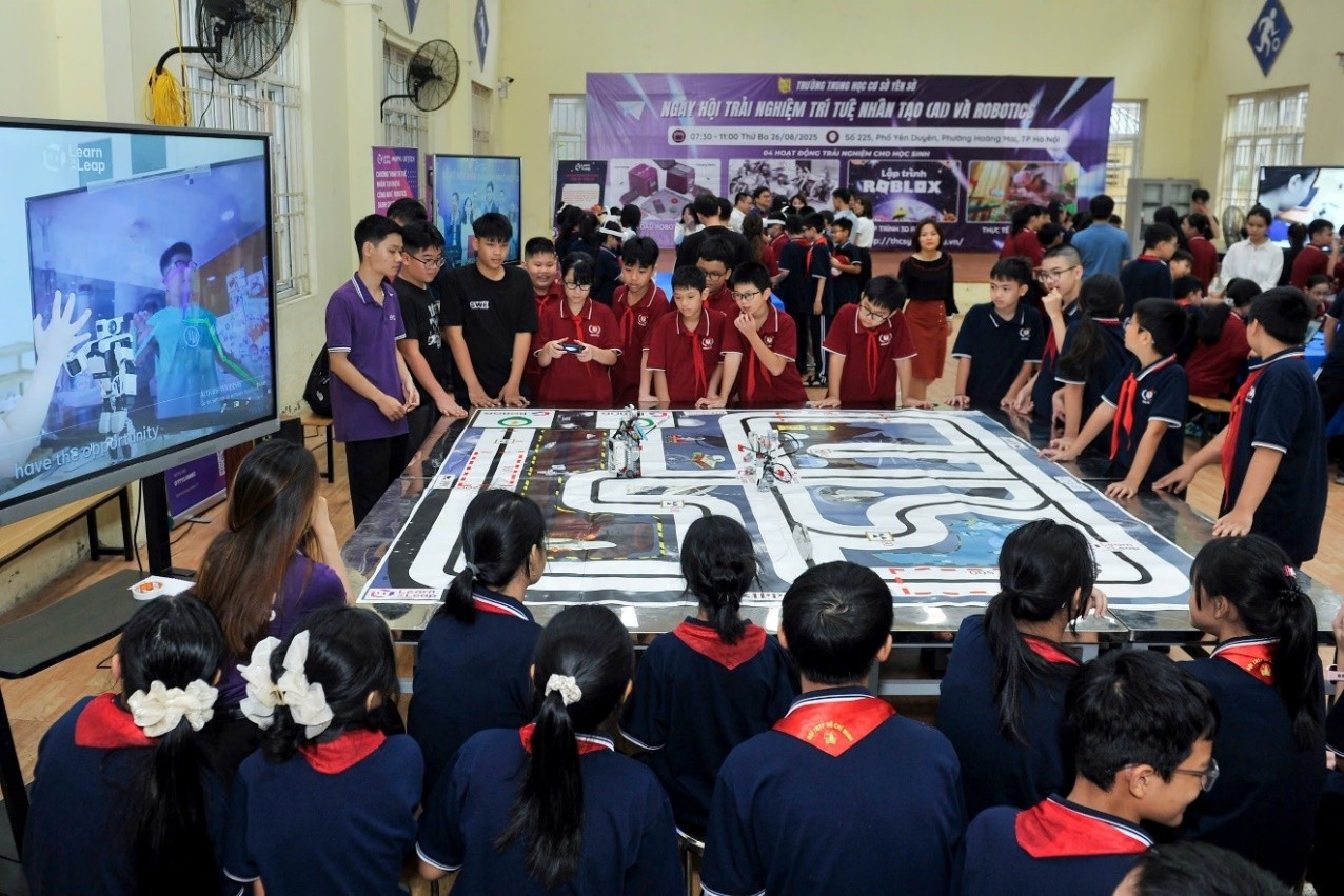 Học sinh Trường THCS Yên Sở trải nghiệm thực tế trạm Robotics.