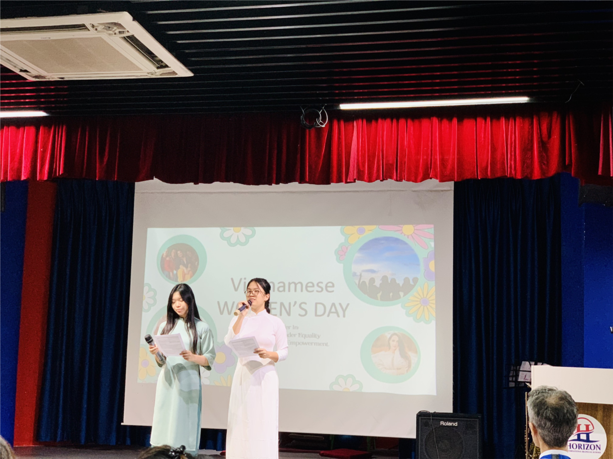 Hôm nay, trường Horizon đã tổ chức một buổi lễ đặc biệt để kỷ niệm ngày của những người phụ nữ Việt Nam. Chúng tôi muốn gửi lời chúc tốt đẹp nhất đến tất cả các cô giáo, các mẹ, các bà, các cô, các chị và các em học sinh nữ.