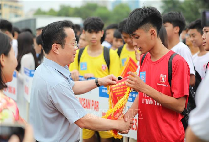 Giải năm nay có 100 đội bóng tham dự, đến từ 100 trường THPT công lập, bán công và dân lập trên địa bàn thành phố Hà Nội. Ảnh: Thanh Tùng - TTXVN.
