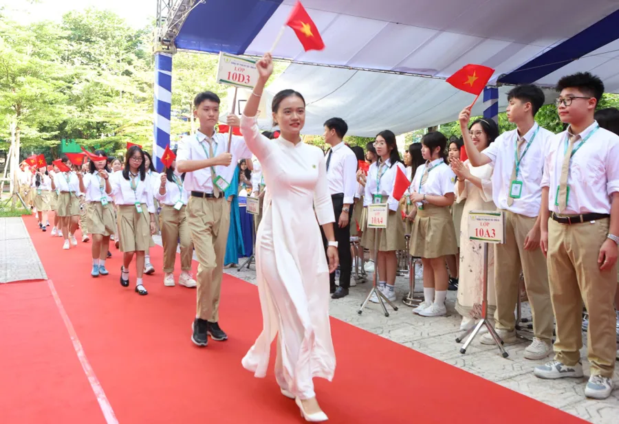 Lễ đón học sinh khối 10 tại Trường THPT Phan Huy Chú.