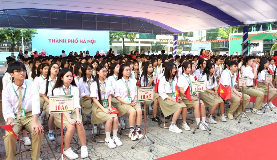 Quang cảnh Lễ khai giảng tại Trường THPT Phan Huy Chú.