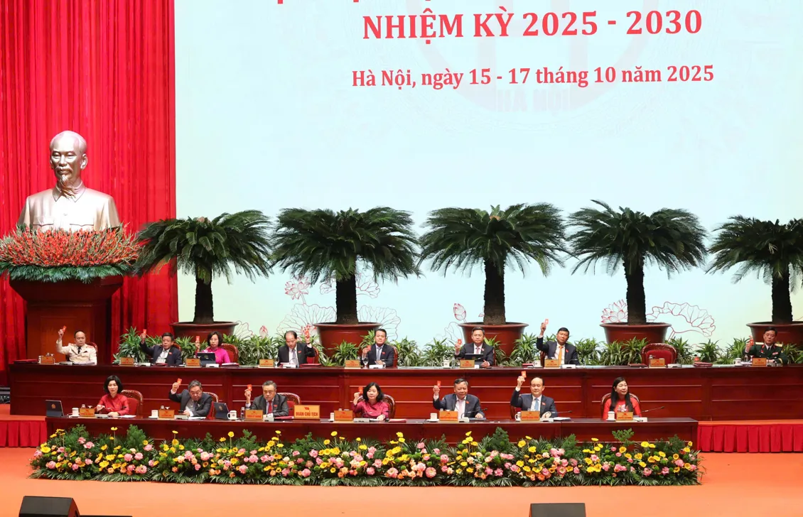 Đại hội biểu quyết thông qua Nghị quyết Đại hội đại biểu Đảng bộ TP Hà Nội lần thứ XVIII, nhiệm kỳ 2025-2030.