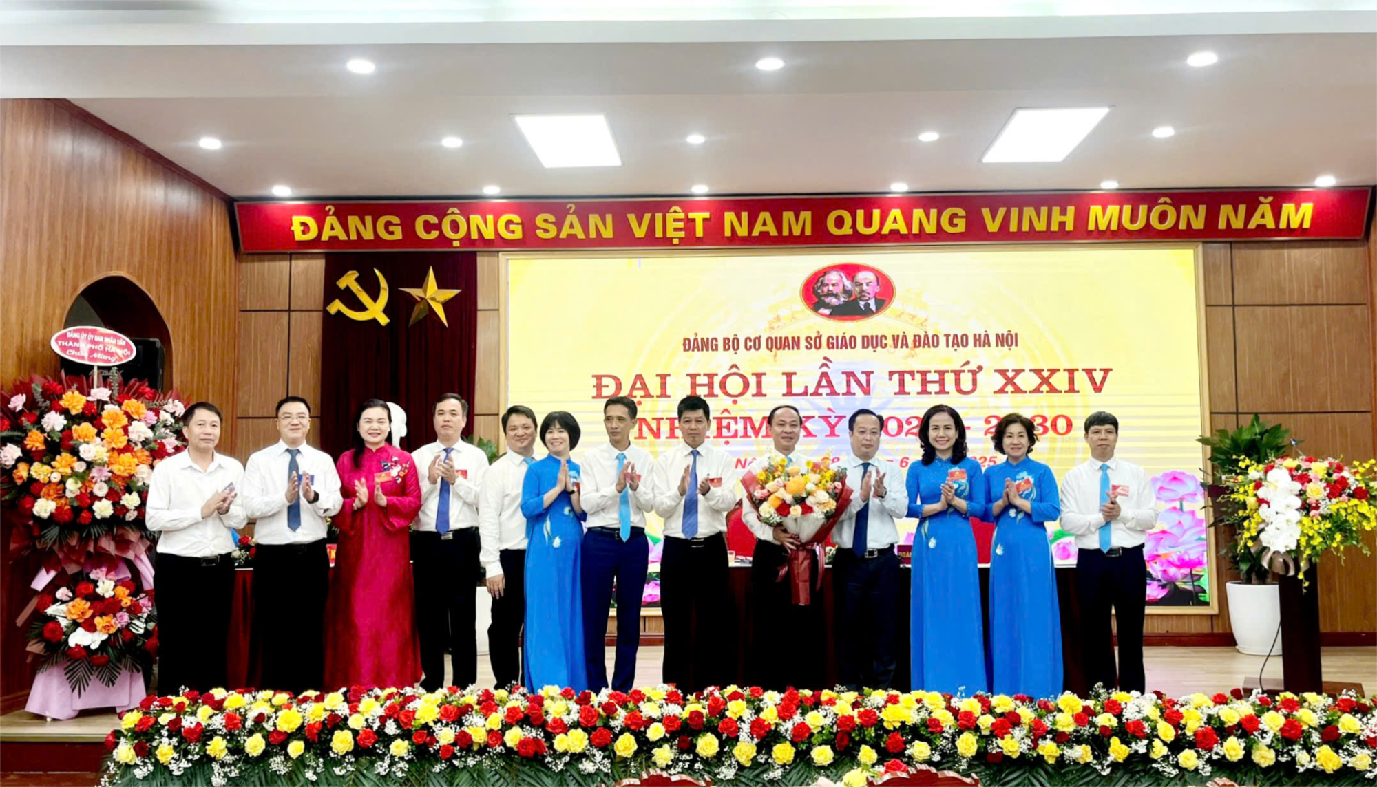 Đại hội tặng hoa chúc mừng Ban Chấp hành Đảng bộ Cơ quan Sở Giáo dục và Đào tạo Hà Nội nhiệm kỳ 2025 - 2030.