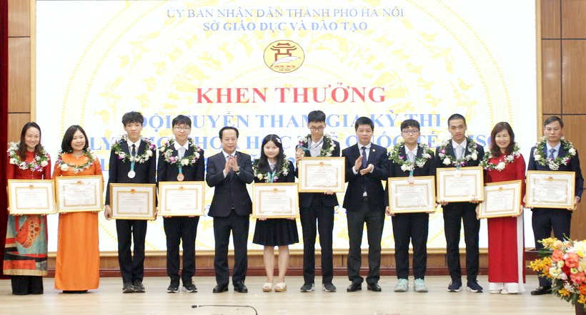Tại buổi lễ, Sở GD&ĐT Hà Nội đã trao bằng khen của Chủ tịch UBND thành phố cho 6 học sinh đạt thành tích cao Kỳ thi Olympic Khoa học trẻ quốc tế (IJSO) năm 2023.