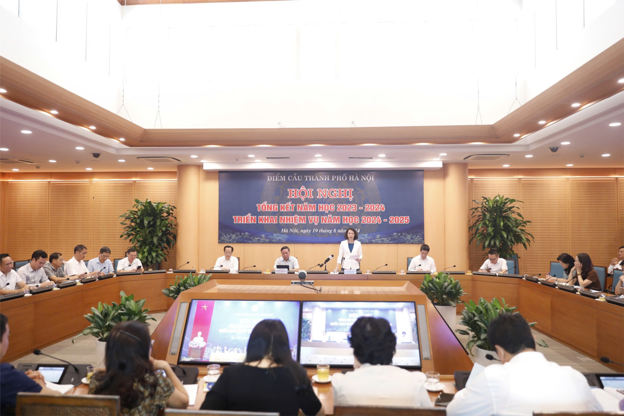 Báo cáo tham luận tại điểm cầu UBND Thành phố, Phó Chủ tịch UBND TP Hà Nội Vũ Thu Hà khẳng định, năm học 2023-2024, sự nghiệp giáo dục Thủ đô đạt được những kết quả toàn diện ở các cấp học, ngành học, hoàn thành tốt các nội dung, nhiệm vụ công tác trọng tâm.