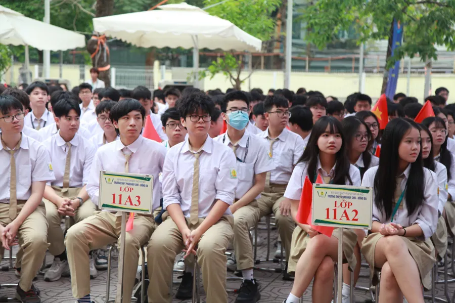 Học sinh Trường THPT Phan Huy Chú - Đống Đa tham dự diễn đàn.