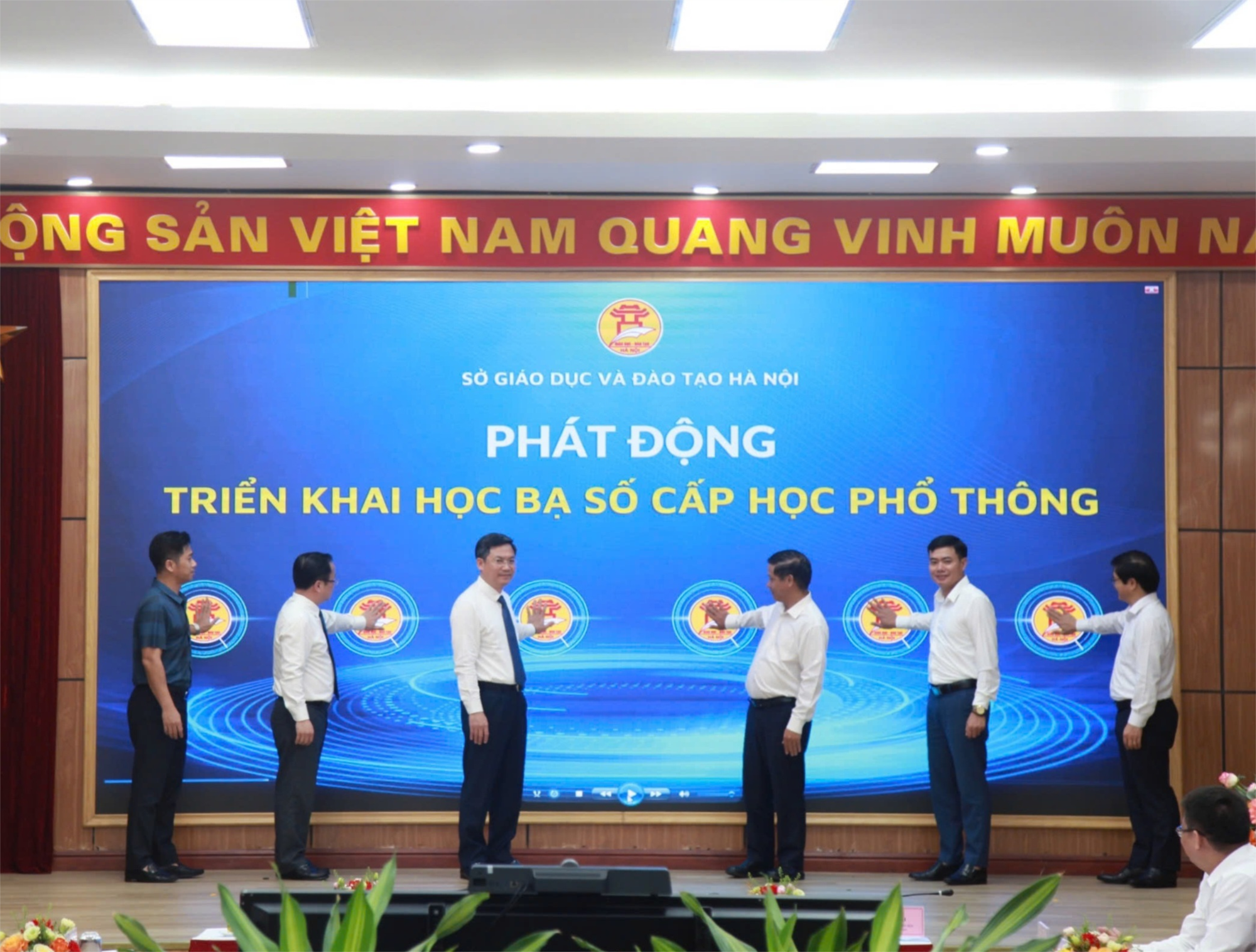 Lãnh đạo trung ương và thành phố Hà Nội bấm nút phát động triển khai thực hiện Học bạ số cấp phổ thông trên địa bàn Thành phố năm học 2024-2025