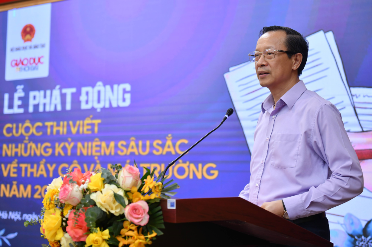 Tại Lễ phát động Cuộc thi viết “Những kỷ niệm sâu sắc về thầy cô và mái trường” năm 2023, Thứ trưởng Bộ GD&ĐT Phạm Ngọc Thưởng chia sẻ, nghề “dạy chữ, dạy người” là nghề cao quý, không chỉ dạy bằng kiến thức mà còn dạy bằng cả nhân cách, trí tuệ của mình.