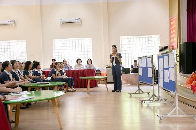 Tại buổi tập huấn, Thạc sĩ Nguyễn Thị Vượng - Hiệu trưởng nhà trường đã báo cáo thực trạng công tác bồi dưỡng đội ngũ giáo viên về kỹ năng báo cáo viên tại Trường Mầm non CLC Mai Dịch, Cầu Giấy, Hà Nội.