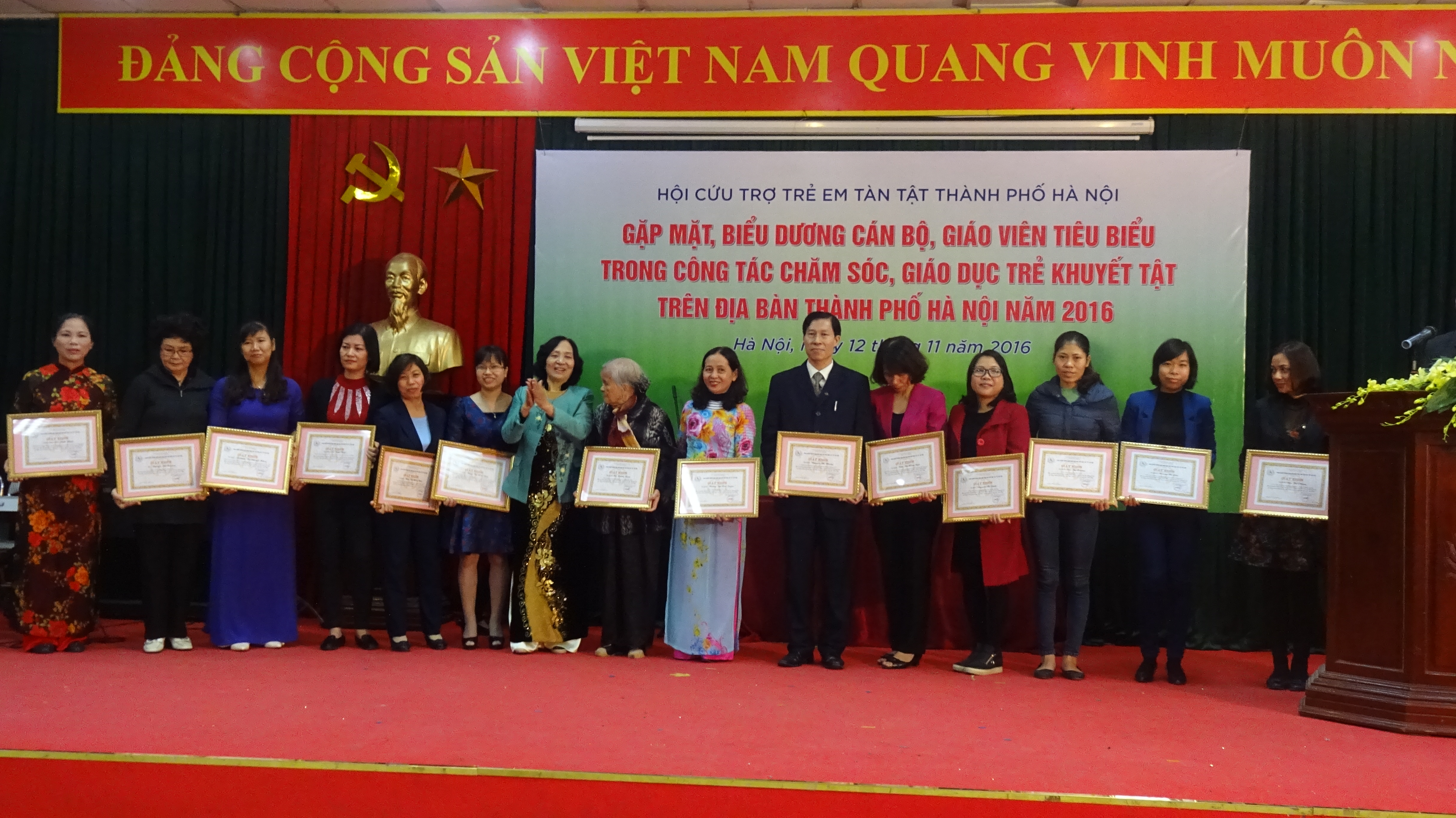 Tại buổi lễ, Hội cứu trợ trẻ em tàn tật TP.Hà Nội đã trao Giấy khen cho 75 cán bộ quản lý, giáo viên tiêu biểu đại diện cho các quận, huyện trên địa bàn TP.