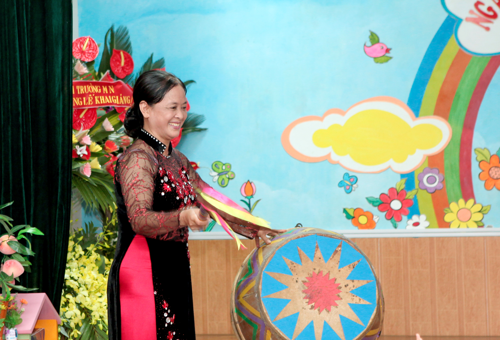 NGƯT Nguyễn Thị Dứa đánh trống khai giảng năm học mới