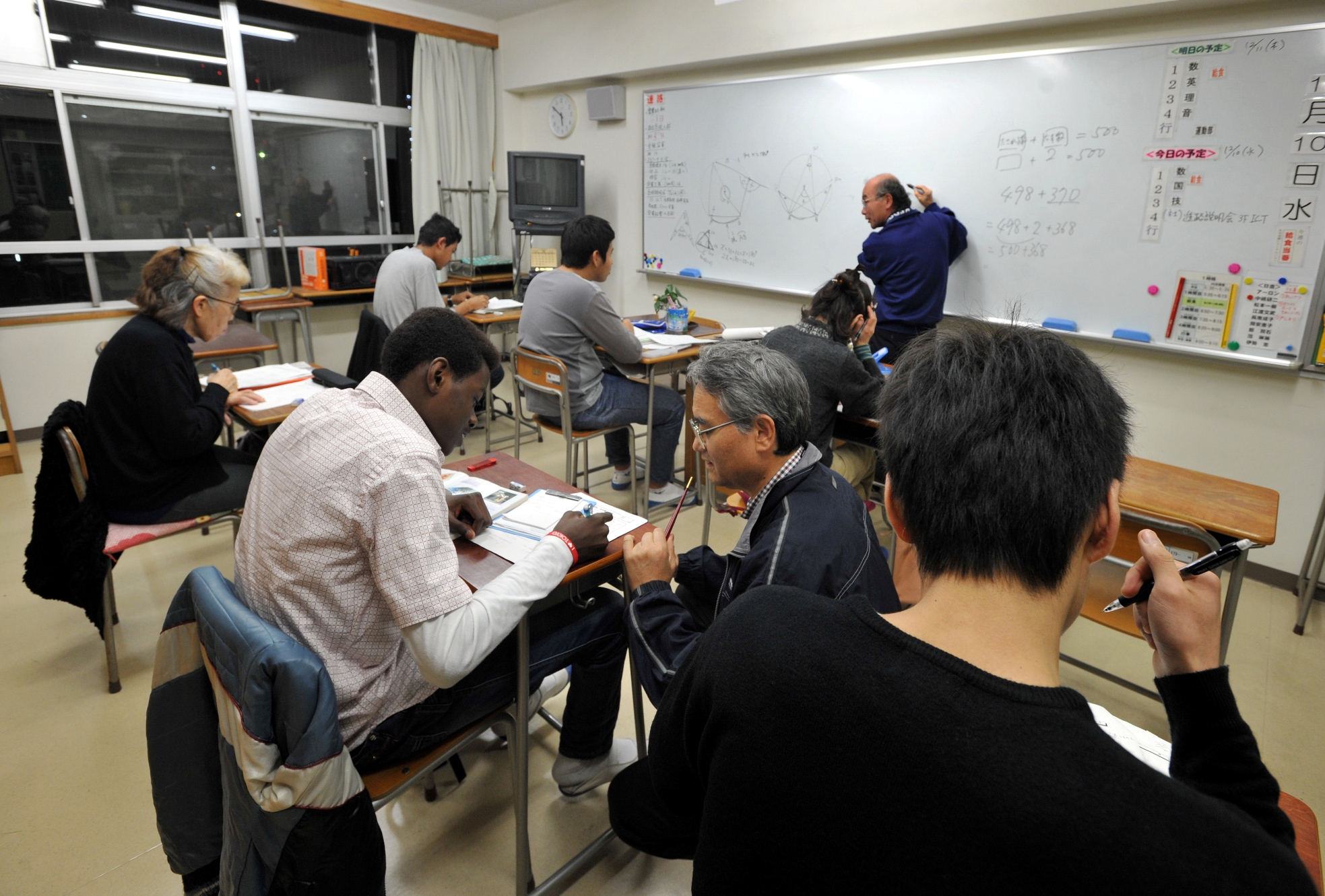 Các lớp học buổi tối, thường đáp ứng chủ yếu đối tượng là nạn nhân của đói nghèo thời hậu chiến. Nhưng hiện nay, có đến gần 80% học viên là người nước ngoài, những người thất học khi còn bé từ trước khi tới Nhật. Nhiều người là dân tị nạn. Số khác là trẻ mồ côi thời chiến từ Trung Quốc đến định cư tại Nhật Bản. Một số học viên lại là vợ và con cái người nước ngoài làm việc tại Nhật Bản.