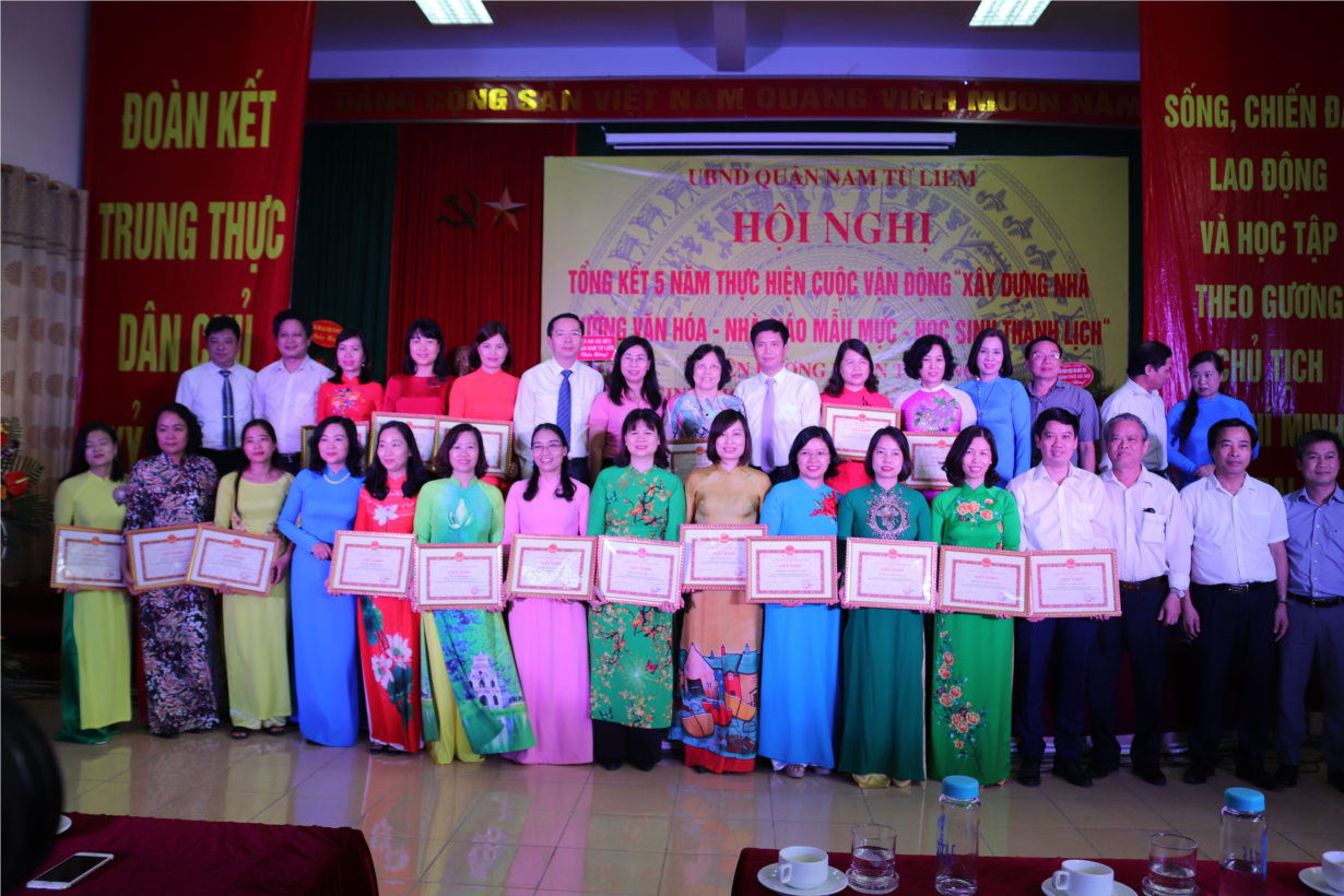 Ngày 10/7, UBND quận Nam Từ Liêm tổ chức Hội nghị tổng kết 5 năm thực hiện cuộc vận động “Xây dựng Nhà trường văn hoá- Nhà giáo mẫu mực- Học sinh thanh lịch” và Tuyên dương khen thưởng học sinh giỏi tiêu biểu năm học 2019 - 2020. Tới dự có đồng chí Trần Thanh Long-UVTV, Phó Chủ tịch UBND quận; Đồng chí Đỗ Văn Nam- Phó Chủ tịch Công đoàn ngành Giáo dục Thủ Đô.