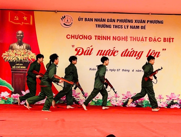 Sáng ngày 07/4/2026, trường THCS Lý Nam Đế đã tổ chức chương trình nghệ thuật đặc biệt “Đất nước đứng lên”. Chương trình là hoạt động ý nghĩa nhằm giáo dục truyền thống yêu nước, bồi đắp niềm tự hào dân tộc và giúp học sinh cảm nhận sâu sắc hơn sự giao thoa, gắn bó giữa lịch sử với văn học.