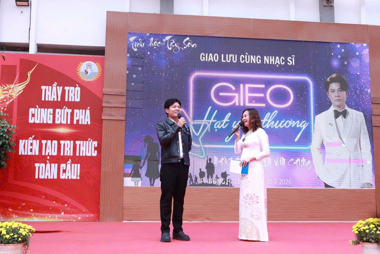 Chiều ngày 12.2.2026, nhạc sỹ Nguyễn Văn Chung đã có buổi giao lưu cùng giáo viên, học sinh và phụ huynh trường Tiểu học Tây Sơn, phường Hai Bà Trưng, Hà Nội.