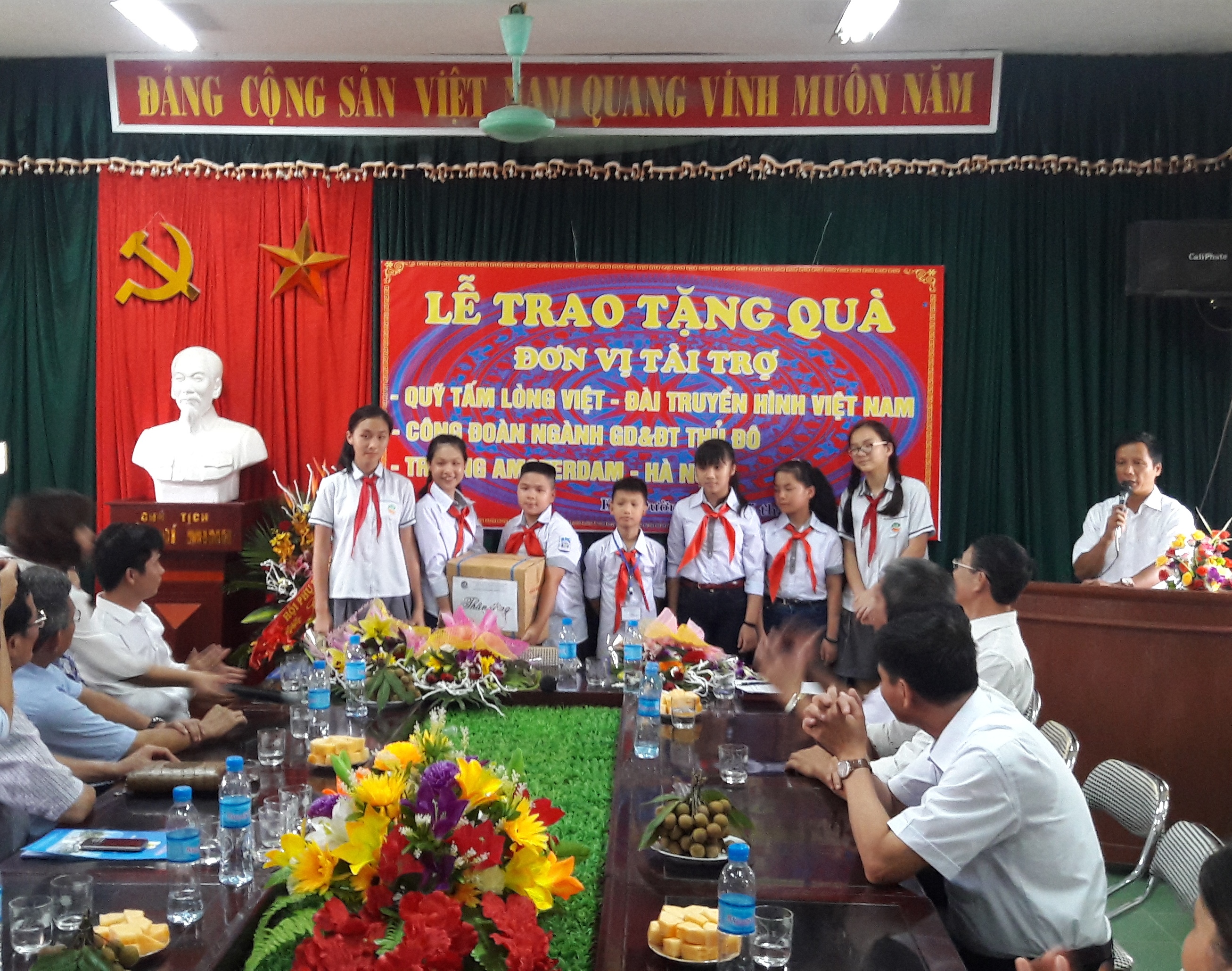 Tới dự buổi trao quà tặng có đồng chí Phạm Văn Quang - Phó bí thư Đảng ủy, Chủ tịch quỹ tấm lòng Việt – Đài truyền hình Việt Nam, đồng chí Đỗ Văn Nam – Phó chủ tịch Công đoàn ngành Giáo dục Hà Nội, đồng chí Nguyễn Trọng Cường – Trưởng phòng CNTT Sở GD&ĐT Hà Nội, đồng chí Lê Hồng Chung – Phó chánh văn phòng Sở GD&ĐT Hà Nội và các em học sinh, giáo viên trường THPT chuyên Hà Nội Amsterdam, Hệ thống trường Ngôi sao Hà Nội.