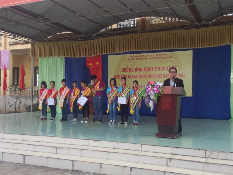 Sau phát biểu hưởng ứng của hiệu trưởng trường THCS Quang Minh và học sinh, các hoạt động ngoại khóa, cuộc thi tìm hiểu pháp luật của ba Đội chơi mang tên Kiến Quốc, Bảo Hiến và Công lý đã diễn ra sôi nổi, hào hứng, lồng ghép được các tình huống về nội dung các luật Giao thông đường bộ, Chăm sóc GD trẻ em, Công ước về quyền trẻ em; luật Hôn nhân và gia đình, luật nghĩa vụ quân sự, bảo vệ môi trường, luật lao động...