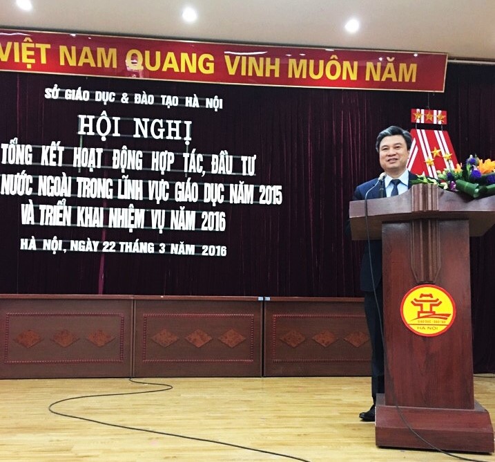 Sáng 22/3/2016, Sở Giáo dục và Đào tạo Hà Nội đã tổ chức Hội nghị tổng kết hoạt động hợp tác, đầu tư của nước ngoài trong lĩnh vực giáo dục năm 2015 và triển khai nhiệm vụ năm 2016. Đến dự Hội nghị có đại diện của Vụ Hợp tác quốc tế - Bộ Giáo dục và Đào tạo, đại diện lãnh đạo phòng PA83, PA72 Công an Thành phố Hà Nội, đại diện lãnh đạo các phòng ban Sở GD&ĐT Hà Nội, đại diện lãnh đạo các phòng GD&ĐT của 30 quận, huyện, thị xã cùng các đại diện lãnh đạo của các cơ sở giáo dục có hợp tác, đầu tư nước ngoài tại Hà Nội.