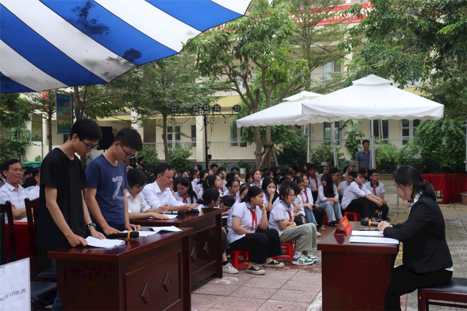 “Phiên tòa giả định” phổ biến, tuyên truyền, hưởng ứng Ngày pháp luật Việt Nam. Ảnh: Minh PhúCũng tại lễ phát động, Trung tâm Trợ giúp pháp lý Hà Nội và Phòng Tư pháp huyện Đan Phượng đã phối hợp tổ chức “Phiên tòa giả định” để phổ biến, tuyên truyền, hưởng ứng Ngày pháp luật Việt Nam đến các giáo viên và học sinh trên địa bàn.