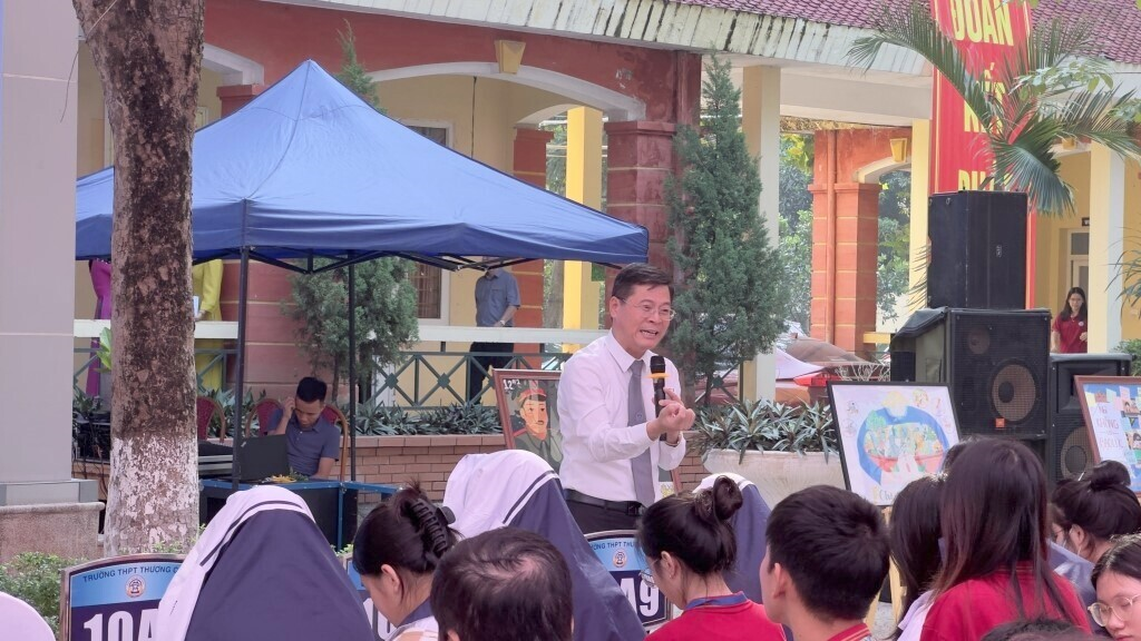 Luật sư Nguyễn Văn Hà chia sẻ những kiến thức pháp luật về bạo lực học đường và an ninh mạng. Ảnh: D.A.