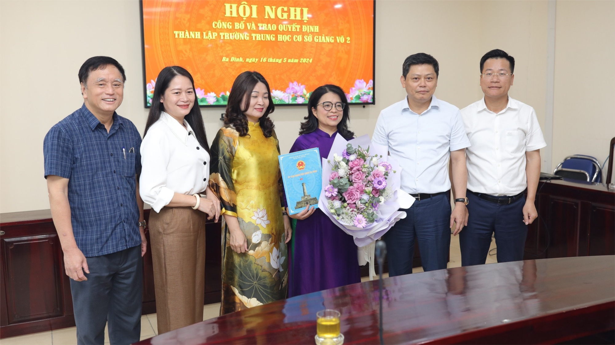 Chiều 17/5, UBND quận Ba Đình đã tổ chức Hội nghị công bố quyết định thành lập Trường THCS Giảng Võ 2 và trao quyết định bổ nhiệm Hiệu trưởng. Trường THCS Giảng Võ 2 được thành lập trên cơ sở tách Trường THCS Giảng Võ (địa chỉ tại số 1B, phố Trần Huy Liệu, phường Giảng Võ, quận Ba Đình).