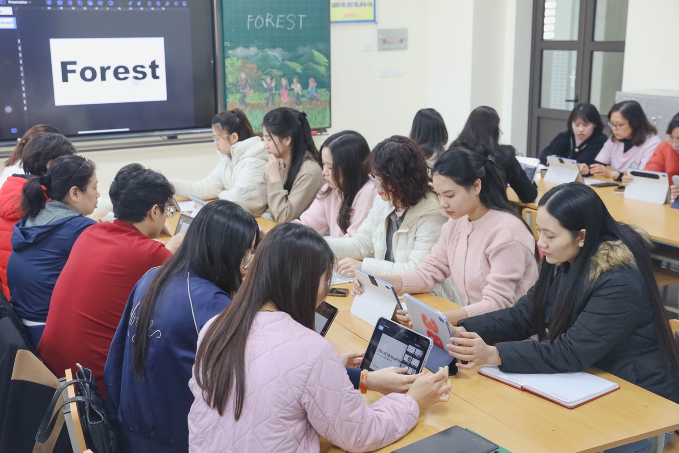 Với sự hướng dẫn của cô Nguyễn Phương Anh - chuyên gia giáo dục Apple, các giáo viên đã được giới thiệu và trải nghiệm trực tiếp nhiều tính năng nổi bật của iPad và các ứng dụng giáo dục đi kèm. Ứng dụng Apple Classroom giúp giáo viên quản lý lớp học một cách hiệu quả, theo dõi tiến độ học tập của từng học sinh và cung cấp hỗ trợ cá nhân hóa. Ngoài ra, các ứng dụng như Keynote và Freeform còn hỗ trợ giáo viên tạo ra những bài giảng tương tác, sinh động, giúp học sinh hứng thú hơn với việc học. Buổi tập huấn diễn ra trong 03 ngày, thu hút sự tham gia và quan tâm của đông đảo giáo viên và chuyên gia giáo dục trong quận, hỗ trợ giáo viên tận dụng tối đa tiềm năng của công nghệ trong quá trình dạy và học.