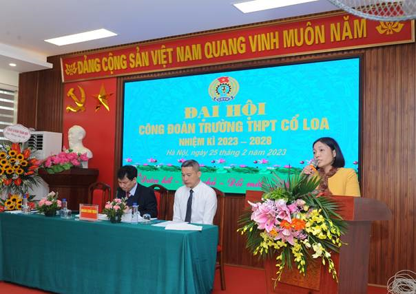 Thay mặt đoàn chủ tịch đ/c Nguyễn Thị Thuy - Phó Chủ tịch Công đoàn đã tổng kết hoạt động của công đoàn trường nhiệm kì 2015-2022, đồng thời thông qua dự thảo báo cáo phương hướng hoạt động công đoàn nhiệm kì 2023-2028.