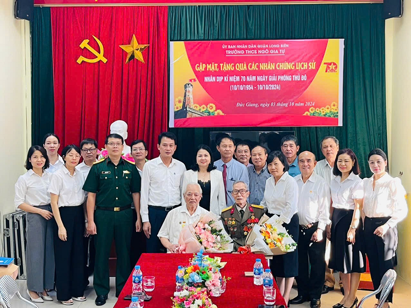 Trong không khí tiết trời đẹp của mùa Xuân Hà Nội, hướng tới kỷ niệm 70 năm ngày Giải phóng Thủ đô Hà Nội, Trường THCS Ngô Gia Tự, quận Long Biên đã tổ chức Buổi gặp mặt những nhân chứng lịch sử của Ngày giải phóng Thủ đô 10/10/1954. Đây là một hoạt động nằm trong chuỗi hoạt động Chào mừng 70 năm ngày giải phóng Thủ đô (1954 – 2024) của nhà trường, nhằm đẩy mạnh các hoạt động tuyên truyền về ý nghĩa, giá trị lịch sử của Thủ đô, truyền thống đấu tranh cách mạng vẻ vang của Đảng bộ, lực lượng vũ trang và Nhân dân Hà Nội trong sự nghiệp giải phóng dân tộc, qua đó khơi gợi trong các em học sinh trường THCS Ngô Gia Tự tình yêu, lòng tự hào về những trang sử vẻ vang của nhân dân thủ đô trong cuộc đấu tranh dựng nước giữ nước vĩ đại.