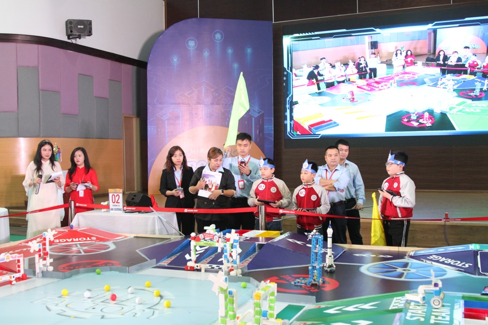 Ngay sau lễ khai mạc, 27 thí sinh xuất sắc được lựa chọn từ các trường Tiểu học có tham gia chương trình tiếng Anh tích hợp STEM Robotics trên địa bàn quận được chia thành 9 đội chơi.