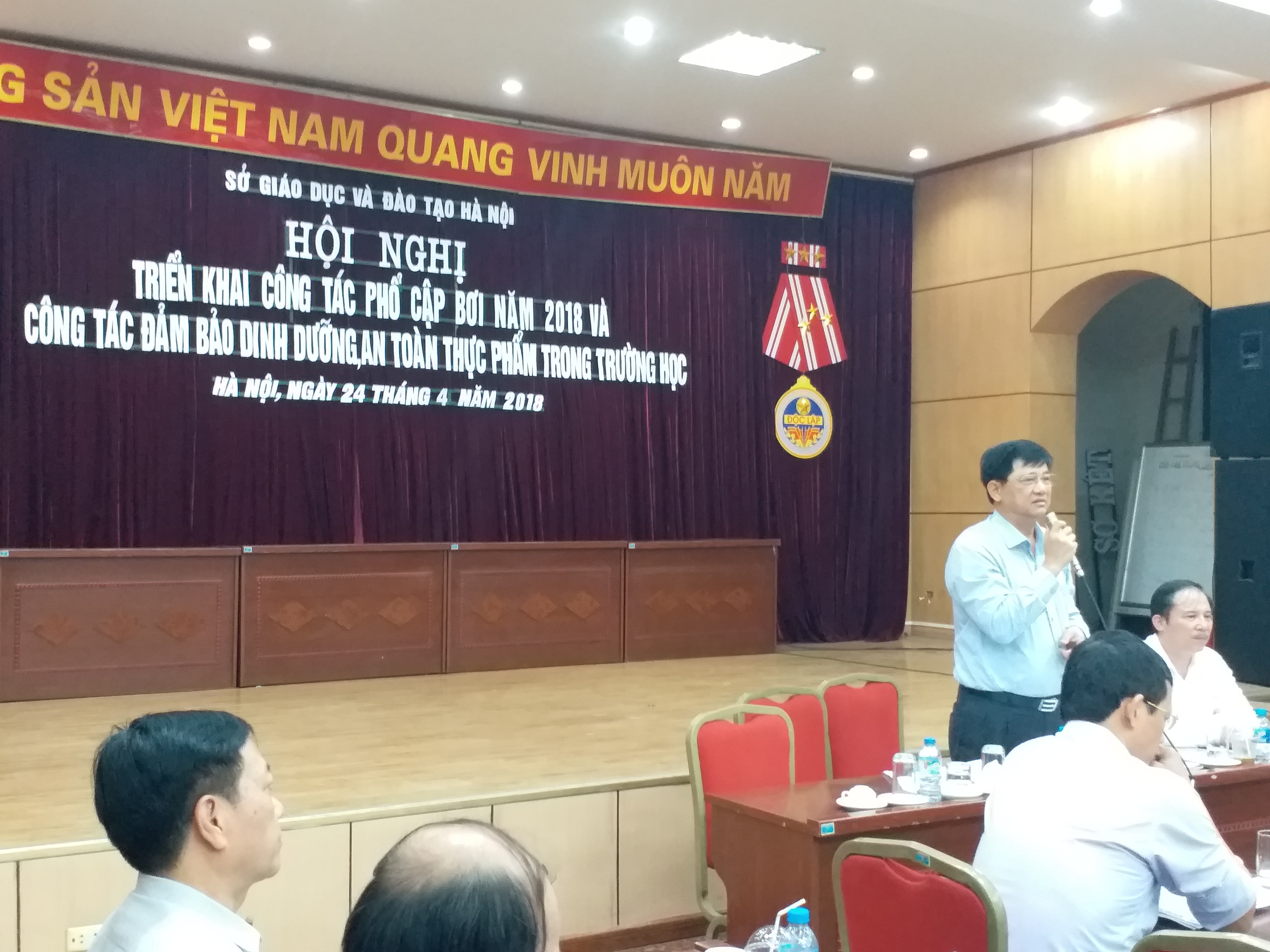 Ngày 24 tháng 4 năm 2018 Sở Giáo dục và Đào tạo Hà Nội đã tổ chức Hội nghị triển khai công tác phổ cập bơi năm 2018 và công tác bảo đảm dinh dưỡng, an toàn thực phẩm trong trường học cùng với đại diện Phó Chủ tịch phụ trách, Trưởng phòng GDĐT, chuyên viên phụ trách công tác giáo dục thể chất và Y tế trường học thuộc 30 quận, huyện, thị xã.