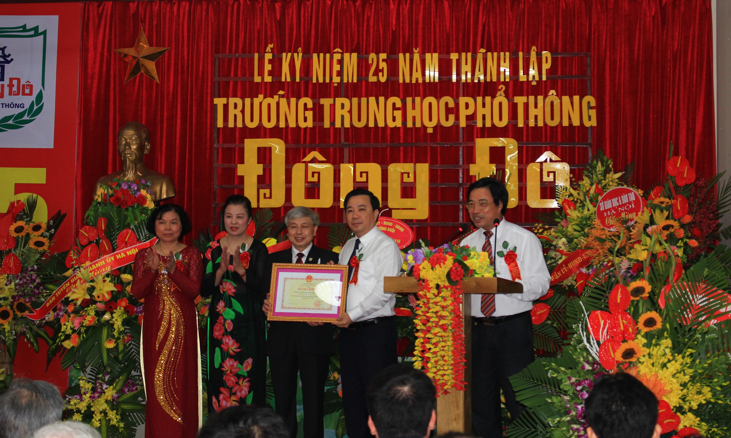 Phát biểu tại buổi lễ, Phó Giám đốc Sở GD&ĐT Hà Nội Chử Xuân Dũng đã ghi nhận và đánh giá cao thành tích nhà trường đạt được trong 25 năm qua. Phó giám đốc nhấn mạnh: Là một trường ngoài công lập, mặc dù còn gặp nhiều khó khăn nhưng các thế hệ thầy và trò trường THPT Đông Đô đã có nhận thức đúng, từ đó thực hiện nhiều giải pháp phù hợp như tự chủ về nhân sự, tự chủ trong tổ chức đào tạo, thực hiện chương trình, quản lý tài chính, đầu tư xây dựng cơ sở vật chất, đồng thời thực hiện các chính sách thu hút nhân tài, không ngừng đổi mới phương pháp dạy và học nhờ đó chất lượng đào tạo của nhà trường luôn được giữ vững. Phó Giám đốc Sở cũng mong muốn từ những thành tích đã đạt được, cùng với sự đồng thuận và quyết tâm cao, tập thể cán bộ, giáo viên trường THPT Đông Đô tiếp tục phát huy hơn nữa khả năng, trí tuệ, tâm sức của mình trong việc đào tạo những thế hệ học trò, những công dân của Thủ đô có đủ đức, trí, thể, mỹ để sẵn sàng bước vào tương lai, chủ nhân của thế kỷ 21 trên con đường hội nhập và phát triển.