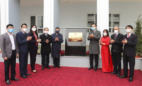 Lãnh đạo Huyện và xã gắn biển công trình Trường Tiểu học Kim Lan