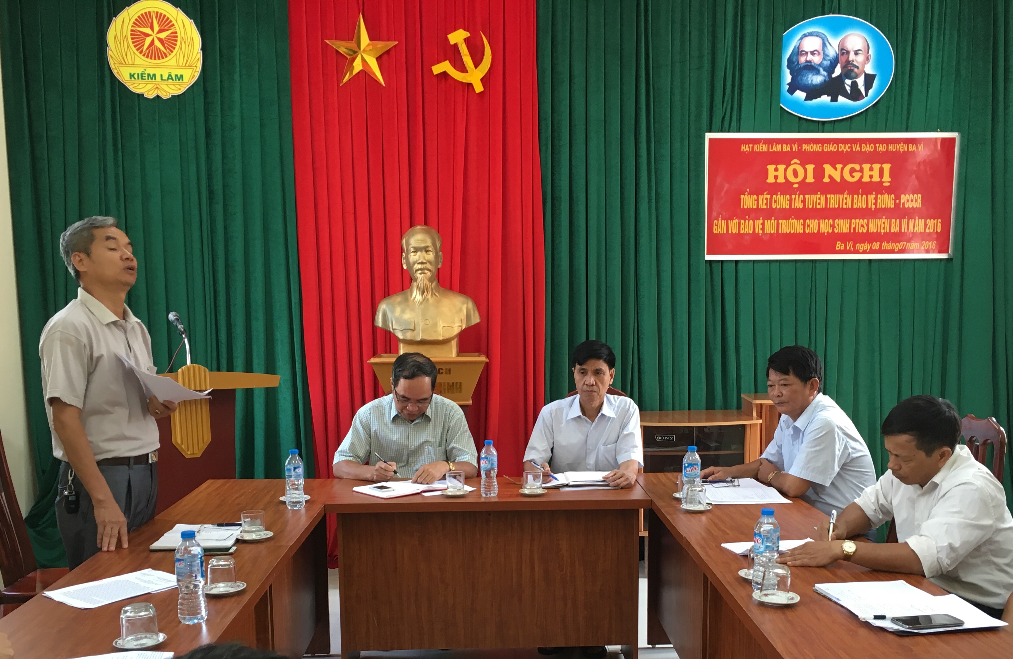*Thực hiện Luật bảo vệ và phát triển rừng, Nghị định của Chính phủ về công tác phòng cháy, chữa cháy rừng và Kế hoạch của UBND huyện Ba Vì về việc tổ chức thực hiện công tác bảo vệ rừng – phòng cháy chữa cháy rừng trên địa bàn huyện năm 2016, phòng GD&ĐT huyện Ba Vì đã phối hợp với Hạt Kiểm lâm huyện xây dựng và tổ chức thực hiện kế hoạch “Tuyên truyền giáo dục công tác bảo vệ rừng- PCCCR gắn với bảo vệ môi trường cho các em học sinh THCS khu vực 7 xã miền núi huyện Ba Vì”. Kế hoạch đã được hoàn thành trong tháng 5 năm 2016. Theo chương trình, các thầy cô giáo là giảng viên của Viện sinh thái rừng và Môi trường, Trường Đại học Lâm nghiệp đã trực tiếp giảng bài tại 10 trường THCS với 22 lớp và sự tham gia của hơn 4 nghìn học sinh. Nội dung gồm 8 chuyên đề liên quan đến công tác bảo vệ rừng - PCCCR và bảo vệ môi trường gồm: Tài nguyên rừng của huyện Ba Vì và các mối đe dọa; Quan hệ giữa các thành phần trong hệ sinh thái rừng; Đa dạng sinh học rừng Ba Vì và vai trò của nó đối với đời sống con người; Một số bài học thực vật rừng, động vật rừng nguy cấp, quý hiếm tại Ba Vì; Công tác PCCCR tại Ba Vì; Một ngày khám phá rừng tại Ba Vì; Thi thiết kế vật trưng bày bảo vệ tài nguyên rừng; Tìm hiểu bảo tồn tài nguyên rừng. Mỗi học sinh được phát 1 quyển tài liệu tuyên truyền bảo vệ rừng - PCCCR gắn với bảo vệ môi trường, tài liệu in 4 mầu kết hợp với các hình ảnh sinh động, dễ nhớ, dễ hiểu. Đây là tài liệu học tập và cũng là cuốn cẩm nang về bảo vệ rừng, gắn với bảo vệ môi trường cho học sinh. Mỗi trường được gắn 1 bảng pa nô tuyên truyền bảo vệ rừng và được phát 10 cờ tuyên truyền. Ngoài ra, mỗi học sinh được phát 1 tờ rơi tuyên truyền bảo vệ rừng- PCCCR. Đã có 5.600 tờ rơi truyên truyền được các em đón nhận để tuyên truyền trong cộng đồng.