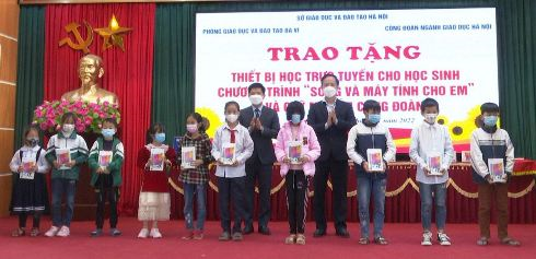 Nhận được sự quan tâm của ngành GDĐT Hà Nội, toàn huyện Ba Vì đợt này đã có 160 học sinh của 69 trường học được nhận thiết bị hỗ trợ học trực tuyến là 01 máy tính bảng và 03 giáo viên có hoàn cảnh khó khăn được nhận hỗ trợ từ chương trình "Mái ấm Công đoàn", mỗi giáo viên là 10 triệu đồng.