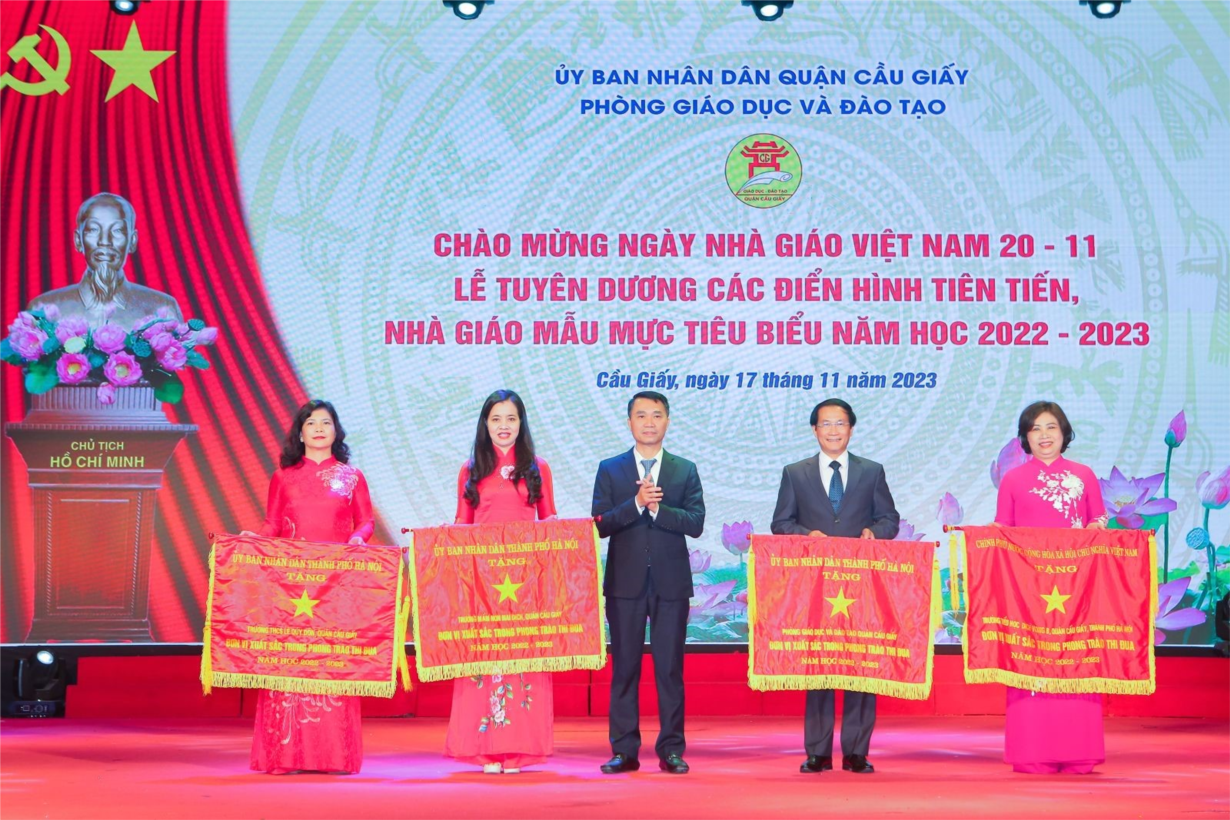 Năm học 2022-2023, với nhiệm vụ trọng tâm “Đoàn kết, sáng tạo, ra sức phấn đấu hoàn thành tốt các nhiệm vụ và mục tiêu đổi mới, củng cố và nâng cao chất lượng giáo dục và đào tạo”, Phòng GDĐT quận Cầu Giấy đã triển khai nhiều giải pháp, nhiều mô hình thi đua đến các trường trong quận như: mô hình “Nâng cao hiệu quả hoạt động Phòng tâm lí học đường” tại các trường Tiểu học và Trung học cơ sở, mô hình “Nâng cao chất lượng giáo dục phát triển vận động cho trẻ trong các cơ sở giáo dục mầm non”. Chất lượng chăm sóc, giáo dục trẻ mầm non được giữ vững, công tác “Phổ cập GDMN cho trẻ 5 tuổi” thực hiện tốt, 100% học sinh lớp 5 hoàn thành chương trình tiểu học. Năm học 2022- 2023 là năm thứ 15 liên tiếp quận Cầu Giấy dẫn đầu thành phố về kết quả thi vào lớp 10 THPT, năm thứ 2 liên tiếp đứng thứ nhất thành phố về kết quả thi học sinh giỏi các môn văn hoá và khoa học với 149 giải. Phong trào phát hiện, truyền thông, nhân rộng về những tấm gương Người tốt việc tốt của ngành GDĐT tiếp tục được triển khai hiệu quả với hơn 200 bài dự thi. Phòng GDĐT được trao giải Nhất tập thể viết về gương điển hình tiên tiến, người tốt việc tốt cấp quận. 03 nhà giáo được vinh danh “Nhà giáo Hà Nội tâm huyết, sáng tạo” cấp thành phố. 16 thầy giáo, cô giáo đạt giải trong Hội thi Giáo viên dạy giỏi cấp thành phố với 09 giải Nhất, 07 giải Nhì. Phòng GDĐT được tặng giấy khen đơn vị có thành tích xuất sắc trong công tác tổ chức Hội thi giáo viên dạy giỏi các bậc học. Tham gia các cuộc thi Thể dục thể thao, các thầy cô giáo xuất sắc giành 1 Huy chương vàng, 1 Huy chương Bạc cấp Quốc gia; 1 Huy chương Vàng, 1 Huy chương Bạc, 1 Huy chương Đồng cấp Thành phố. Kết thúc năm học 2022 – 2023, Phòng GDĐT quận được UBND thành phố tặng cờ thi đua xuất sắc. Các chỉ tiêu công tác cuối năm học của ngành được được Sở GDĐT khen thưởng 13/13 chỉ tiêu xuất sắc.
