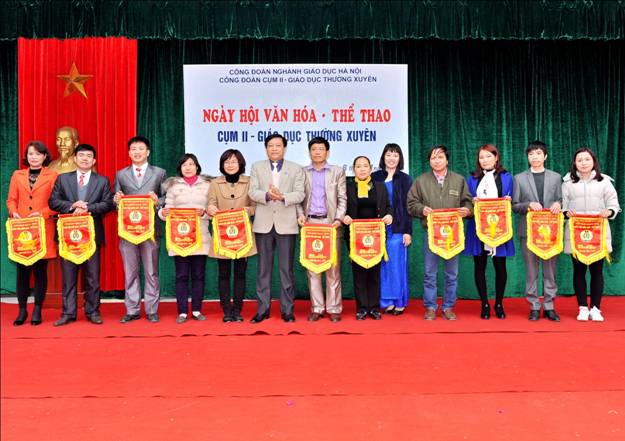 Đ/c Trần Văn Thảnh - Phó Chủ tịch CĐGD Hà Nội tặng Cờ lưu niệm cho các đơn vị tham gia ngày Hội
