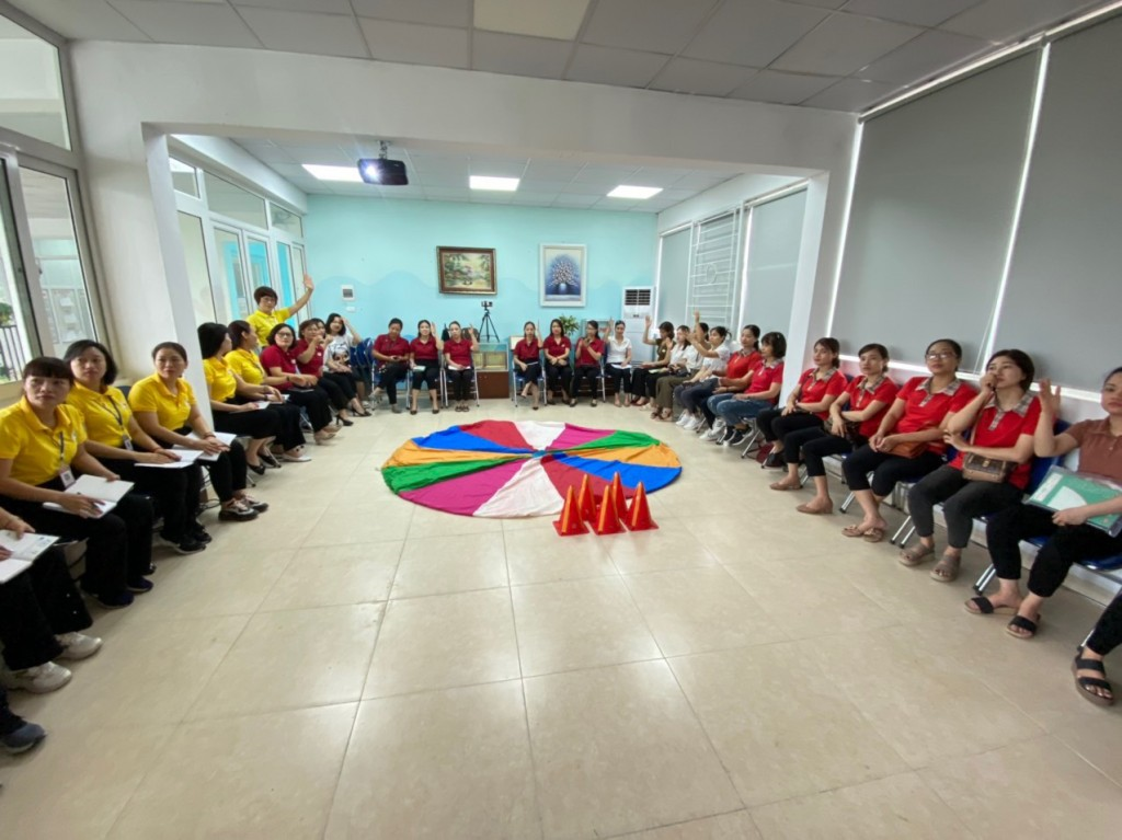 Sau 4 tiếng cùng làm việc, các cô giáo đã học hỏi được nhiều cách làm mới, thú vị, sử dụng sáng tạo và linh hoạt để tổ chức các hoạt động vận động cho trẻ mầm non; Đặc biệt là đã khơi dậy được niềm vui, tinh thần sảng khoái trong suốt buổi tập huấn.