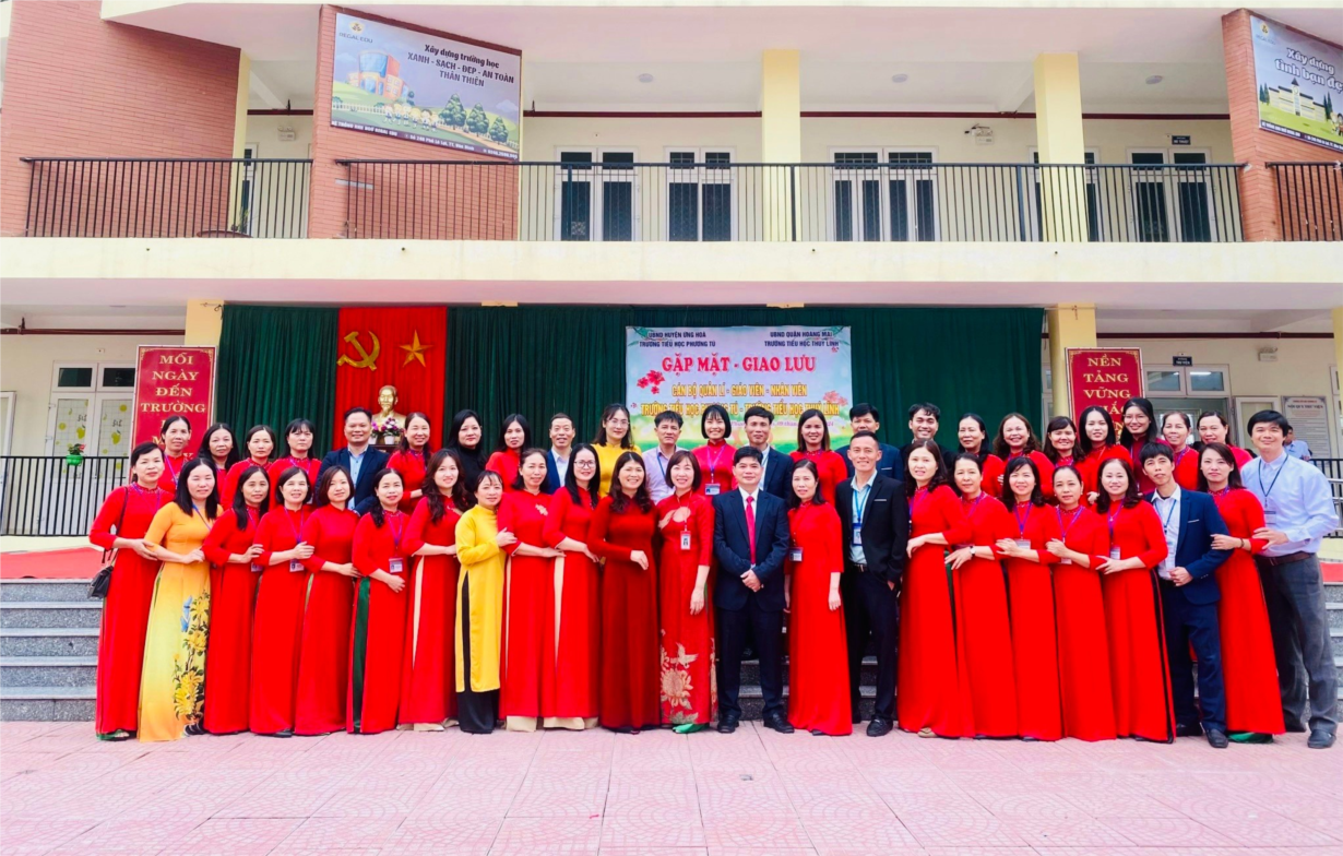 Hiệu trưởng trường Tiểu học Thúy Lĩnh Đàm Thị Kim Dung và Hiệu trưởng trường Tiểu học Phương Tú Chu Thị Hảo chúc mừng giáo viên, học sinh trong tiết chuyên đề