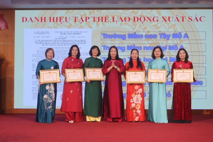 Nhân dịp này, UBND phường đã công bố và trao tặng các Quyết định khen thưởng của Thành phố Hà Nội và Sở Giáo dục và Đào tạo Hà Nội đối với các tập thể, cá nhân ngành giáo dục phường Tây Mỗ có thành tích xuất sắc trong năm học 2024-2025.