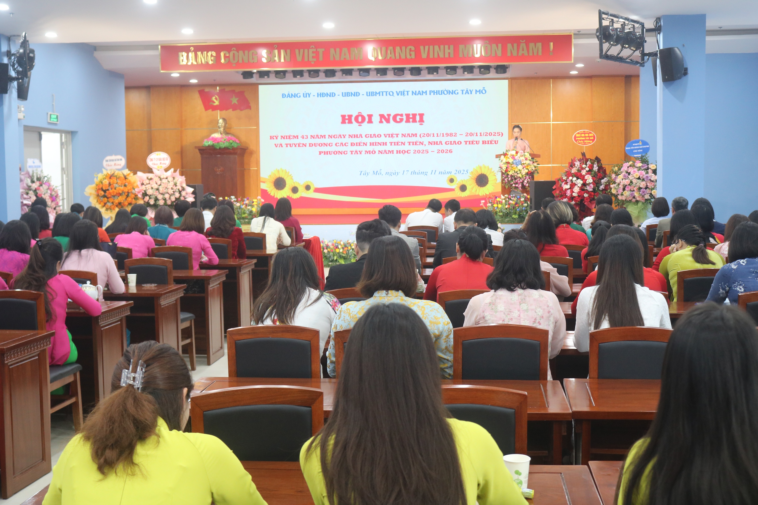 Dự Hội nghị có đồng chí Hoàng Thị Thúy Hằng - Bí thư Đảng ủy, Chủ tịch HĐND phường; các đồng chí trong Ban Thường vụ Đảng ủy, HĐND, UBND, Ủy ban MTTQ Việt Nam phường Tây Mỗ; cùng các thầy giáo, cô giáo, cán bộ quản lý và nhân viên các nhà trường, cơ sở giáo dục trên địa bàn phường.