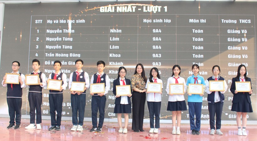 Sáng 27/11, Phòng GDĐT quận Ba Đình tổ chức lễ trao giải kỳ thi HSG các môn văn hóa và khoa học lớp 9 cấp quận năm học 2023 - 2024. Bà Phạm Thị Diễm - Phó Chủ tịch UBND quận Ba Đình về dự và trao khen thưởng cho học sinh đạt giải.