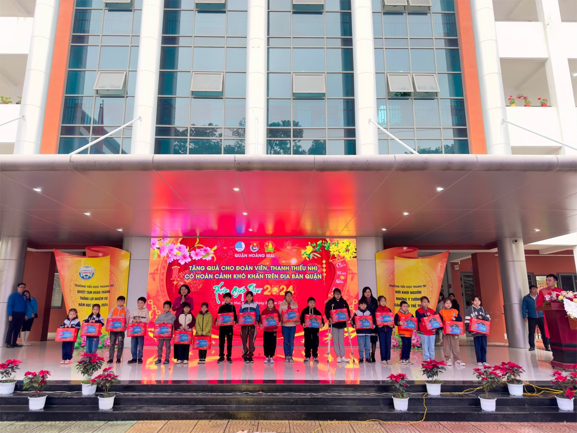 Trong không khí phấn khởi thi đua lập thành tích chào mừng kỷ niệm 94 năm ngày thành lập Đảng cộng sản Việt Nam (03/02/1930-03/02/2024) - Mừng Đảng - Mừng xuân - Mừng Đất nước đổi mới; Căn cứ Chương trình Công tác Đoàn và phong trào Thanh thiếu nhi quận Hoàng Mai năm 2024; Kế hoạch số 11-KH/ĐTN ngày 29/12/2023 của Ban Thường vụ Quận đoàn về việc tổ chức các hoạt động cao điểm của Tuổi trẻ Hoàng Mai phục vụ trước, trong và sau Tết Dương lịch và Tết Nguyên Đán Giáp Thìn 2024 trên địa bàn quận Hoàng Mai, với tinh thần tương thân tương ái, lá lành đùm lá rách và mong muốn sẻ chia với học sinh còn gặp nhiều khó khăn trong cuộc sống; sáng ngày 31/01/2024, trường Tiểu học Thanh Trì phối hợp Quận Đoàn Hoàng Mai tổ chức chương trình “Vui Tết sum vầy” năm 2024.